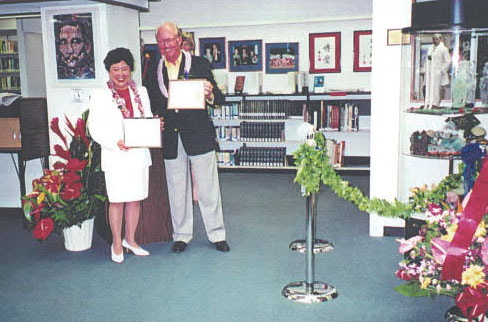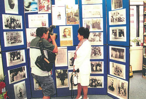 一九九九年八月,孫穗芳博士在夏威夷大學圖書館參觀孫中山圖片展。