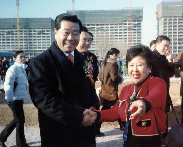 二零零三年十二月廿四日,在北京奧運游泳池奠基開工儀式上,孫穗芳博士與賈慶林先生合攝。