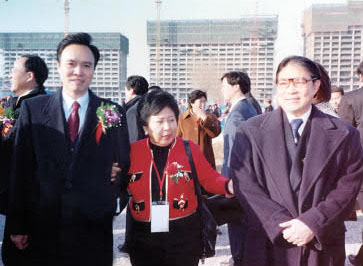 二零零三年十二月廿四日,在北京奧運游泳池奠基開工儀式上,孫穗芳博士與龍新民先生及霍震霆先生合攝。