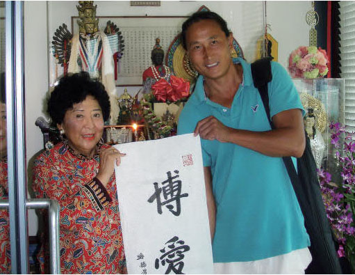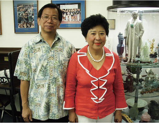 孫穗芳博士與知名航海家翟墨合照於其所捐贈予卡皮奧蘭尼社區學院拉瑪圖書館成立的孫中山先生亞洲收藏館。