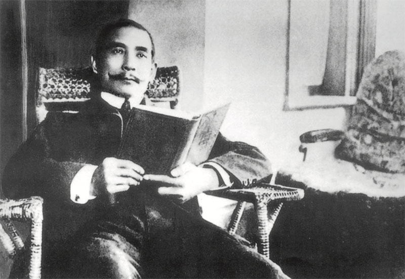 Dr. Sun at Wan Qing Garden in Singa- pore while organizing a Tong Meng Hui branch there in 1906.