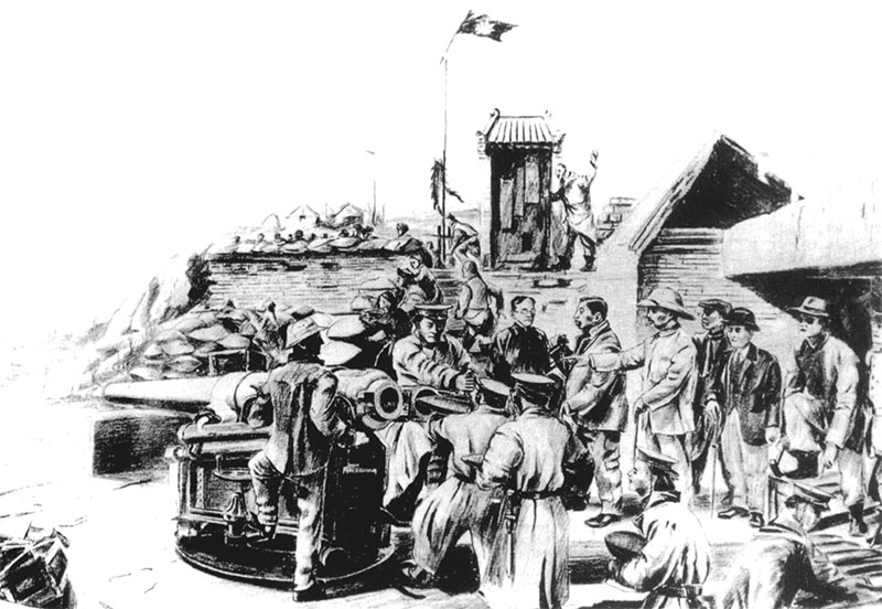 A drawing illustrating the battle commanded by Dr. Sun himself at Zhennanguan in December 1907.