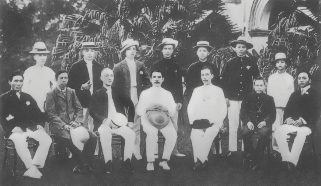 Dr. Sun with overseas Chinese students while rallying support for the revolutionary in Brussels, Belgium, in 1909.