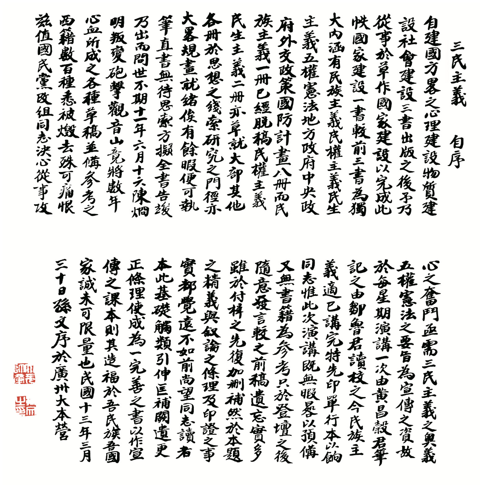 The postscript to The Three Principles of the People by Huang Chang-gu, Mar. 24, 1925.