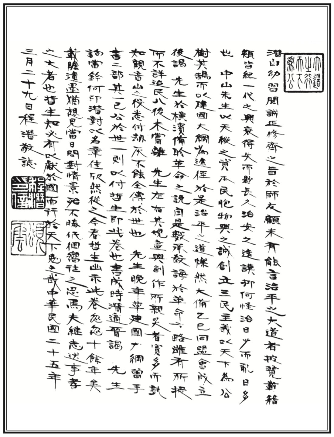 The postscript to The Three Principles of the People by Chen Qu-bing, 1926.