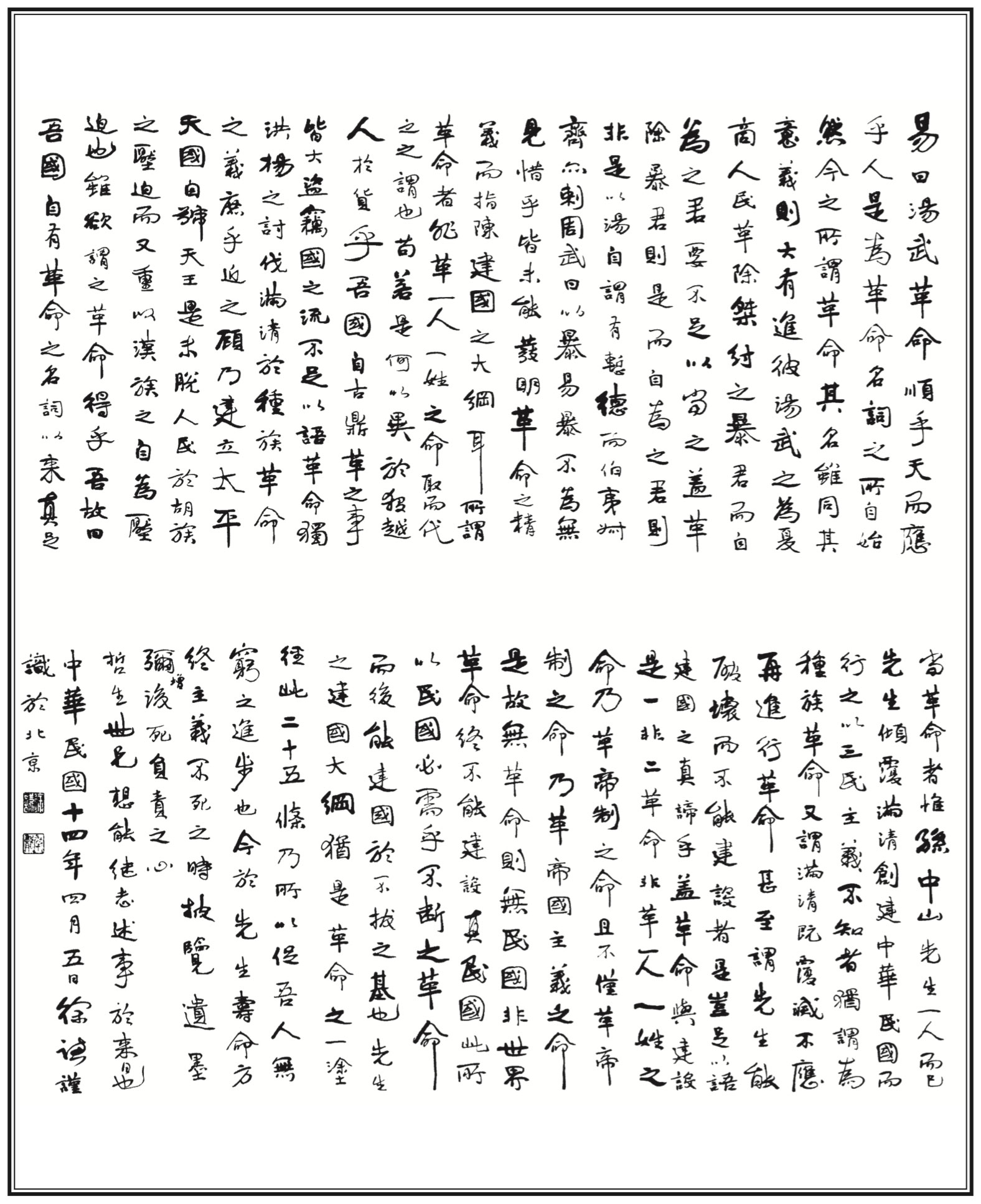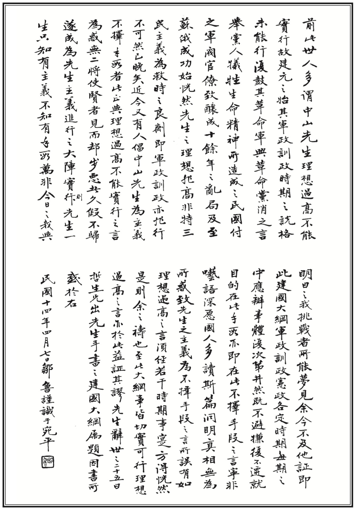 The postscript to Fundamentals of National Reconstruction by Zou Lu, Apr. 7, 1925.