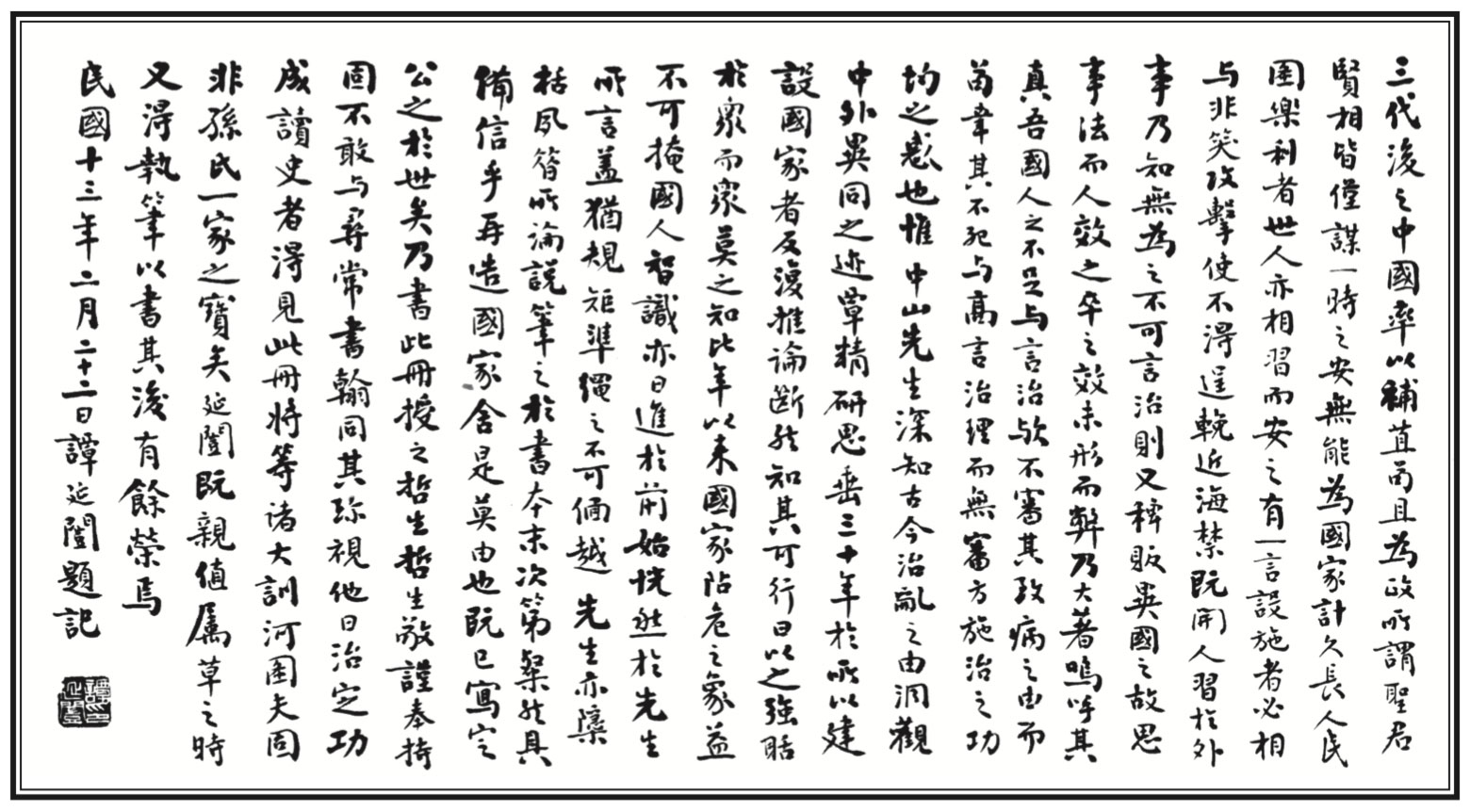 The postscript to Fundamentals of National Reconstruction by Tan Yan-kai, Feb. 22, 1924.