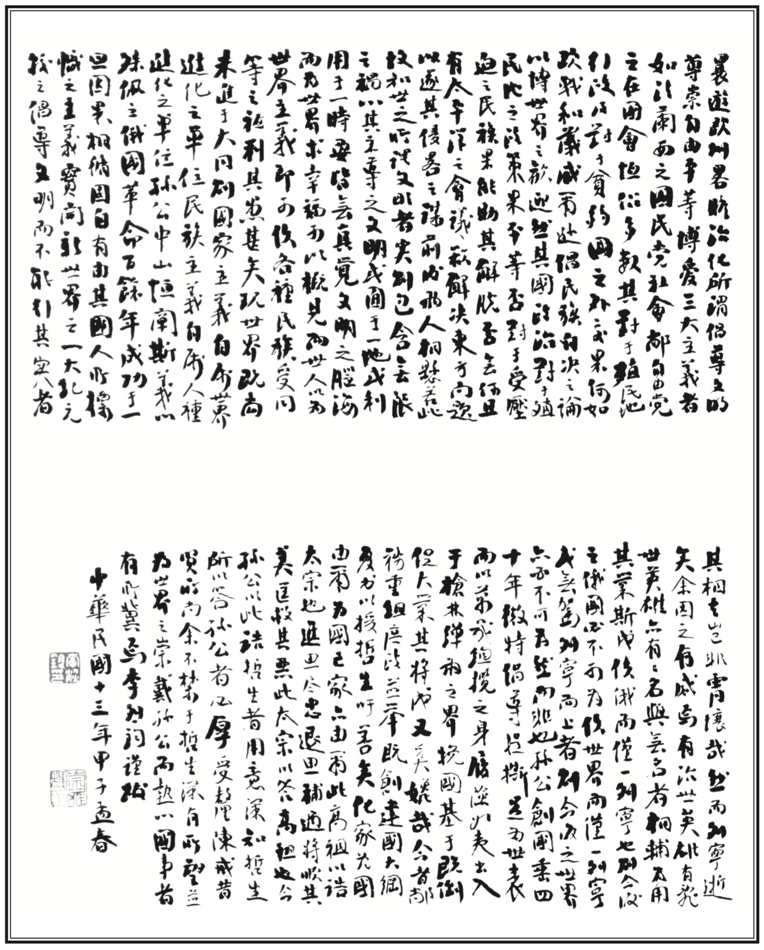 The postscript to Dr. Sun’s Fundamentals of National Reconstruction by Li Lie-jun, spring 1924.