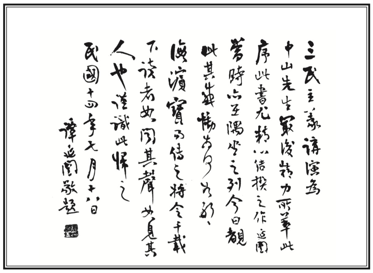 The postscript to The Three Principles of the People by Tan Yan-kai, Jul. 18, 1925.