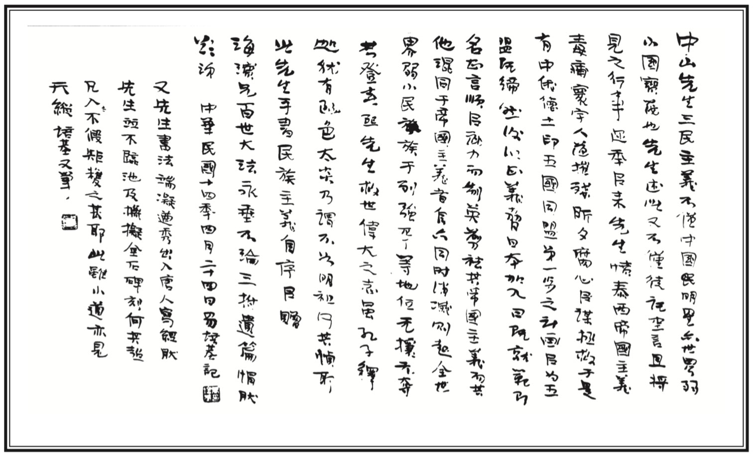 The postscript to The Three Principles of the People by Yi Pei-ji, Apr. 24, 1925.