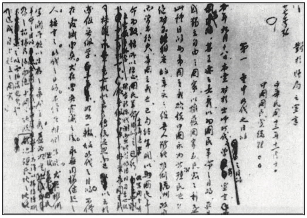 Draft of Dr. Sun’s “Declaration on Going Up North” issued by Dr. Sun on Nov. 10, 1924. On Oct. 23, General Feng Yu-xiang launched a coup d’etat in Beijing and invited Dr. Sun to go to Beijing to discuss state affairs. Dr. Sun decided to go in spite o
