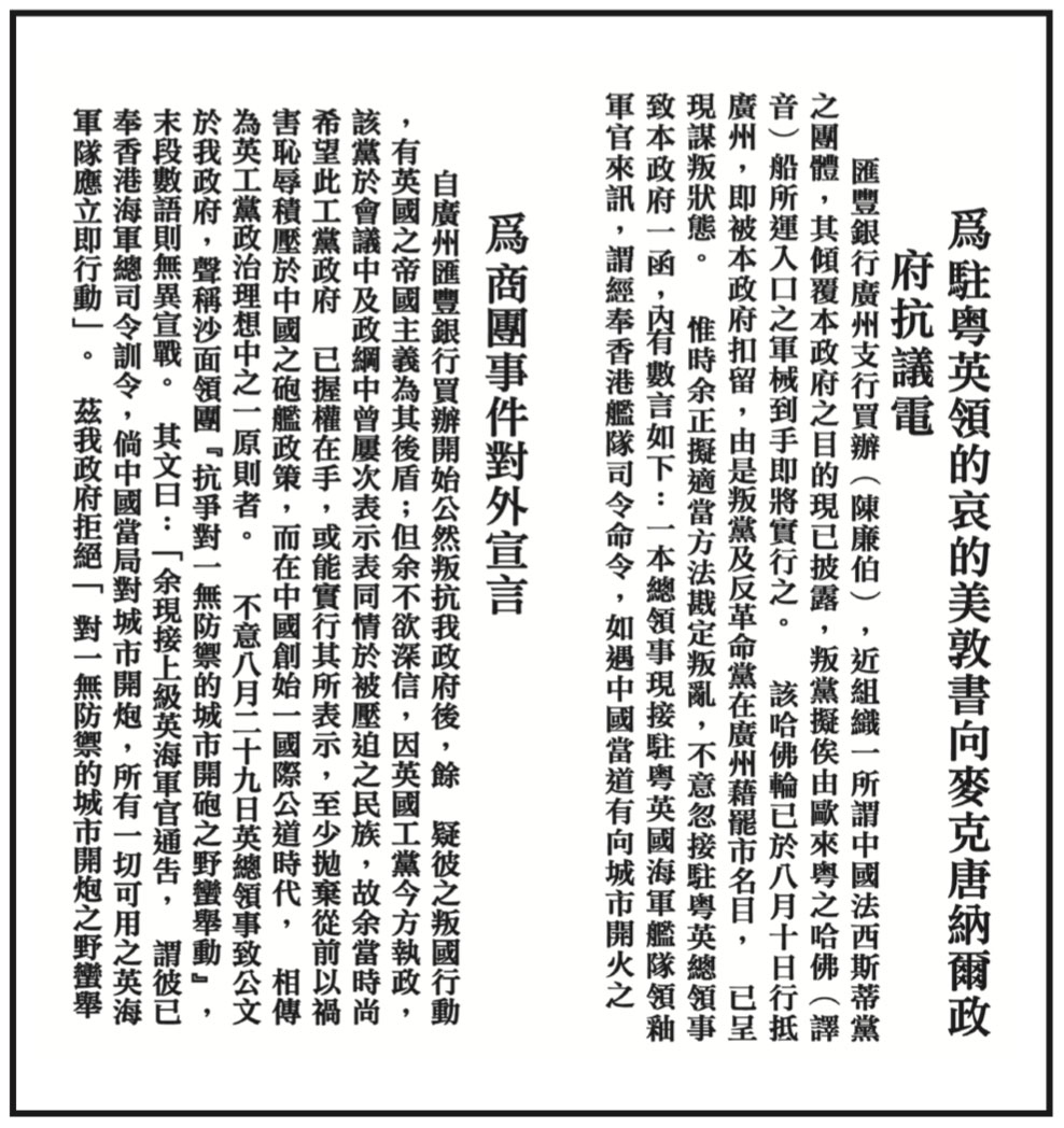 On Sep. 1, 1924, Dr. Sun issued a dip- lomatic statement regarding the Guang- zhou Merchant Group Incident and a telegram to protest against the Great Britain’s interference of China’s internal affairs in this event.