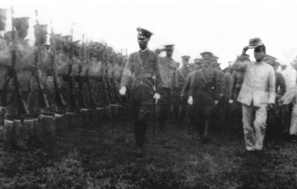 Dr. Sun inspecting after the Northern Expedition Pledge Ceremony, Shao- guan, Sep. 20, 1924.