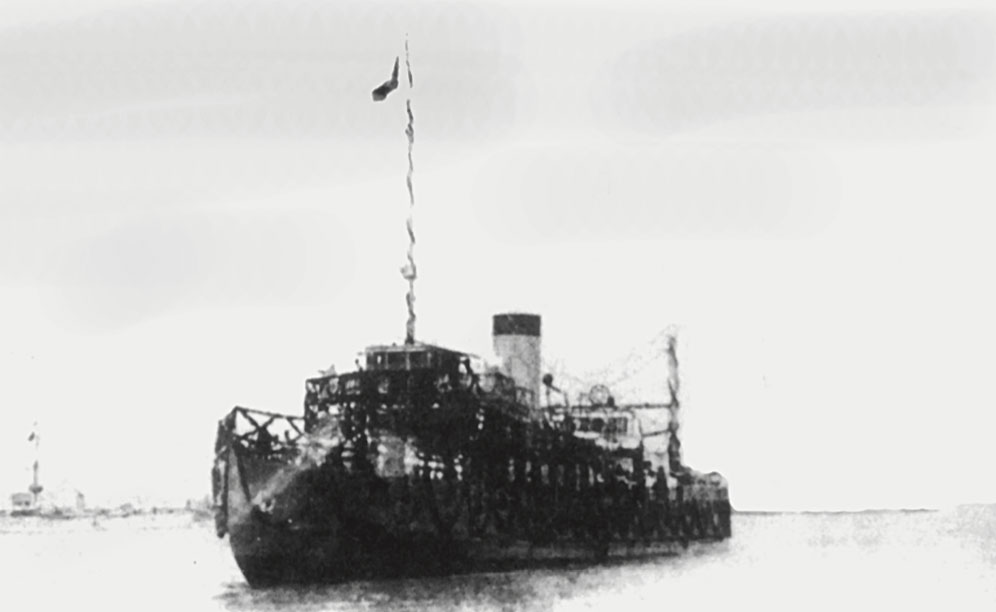 The steamer Wei Sheng taking the coffin across the river, May 28, 1929.