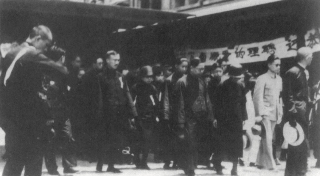 Ministers and officials awaiting Dr. Sun’s coffin at the Pukou Railway Station in Jiangsu Province, May 28, 1929.
