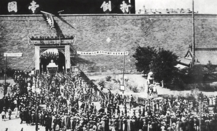 The procession carrying Dr. Sun’s coffin passing Tianan- men in Beijing, May 26, 1929.