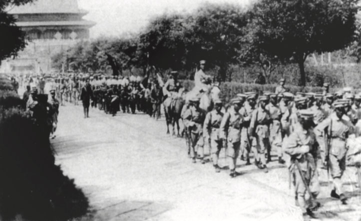 Generalissimo Chiang Kai-shek and his commanders paying tribute to Dr. Sun at Biyun Temple in Beijing on Jul. 6, 1928, after the success of the Northern Expedition.
