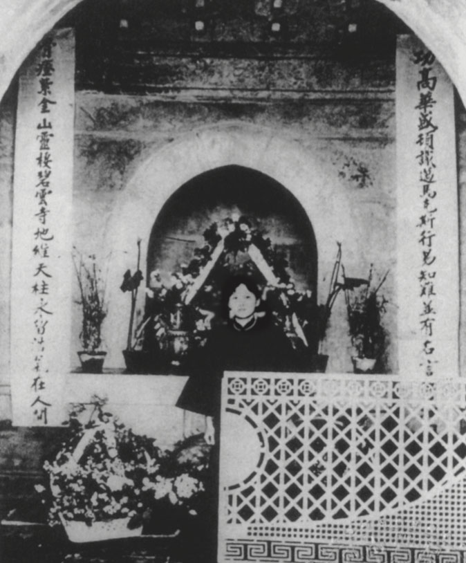 Mme. Soong Ching-ling, widow of Dr. Sun Yat-sen, keeping vigil in the Biyun Temple, April 1925.