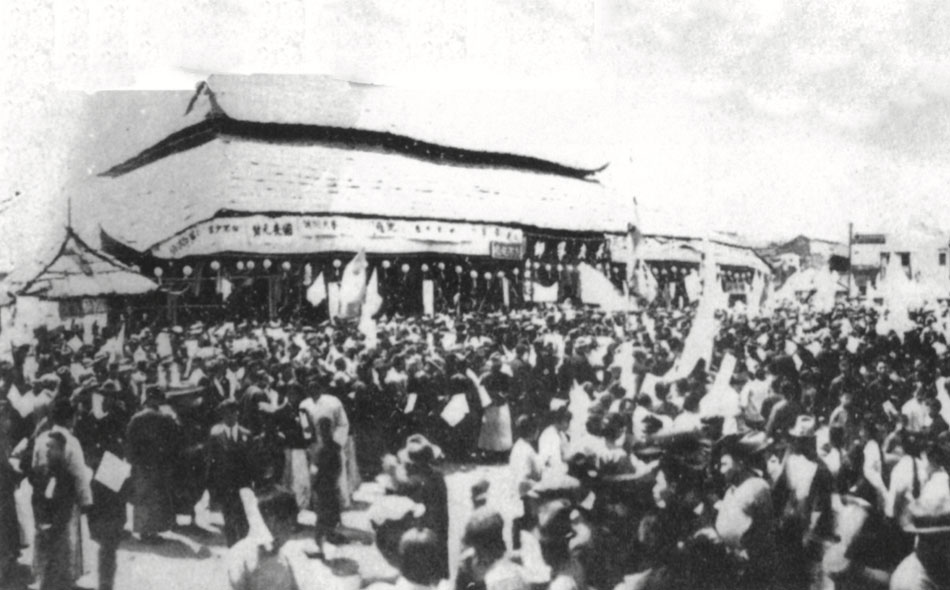 The memorial serve held at Shanghai’s West Gate Stadium, March 1925.