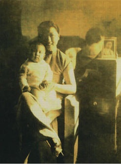Dr. Lily Sui-fong Sun, the baby, in the arms of her mother, Yan Ai-juan, with the picture of her father,Sun Fo, in the background. Photo taken in 1936.